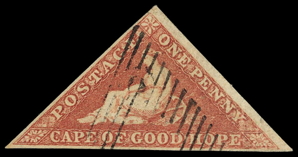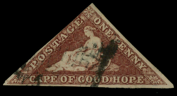 5635 O 12 image1863-64, Triangular, De La Rue printing, 1d deep carmine red (Scott 12), Fine.
