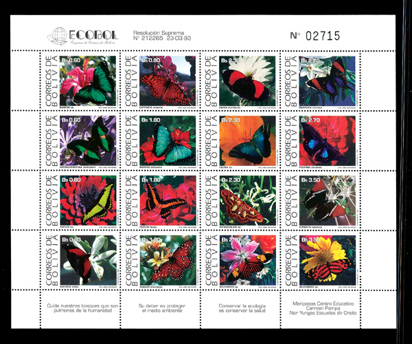 5677 nhbl 889a image1993, 60c-3.50b Butterflies (Scott 889a), sheet of 16, o.g., never hinged, Extremely Fine.
