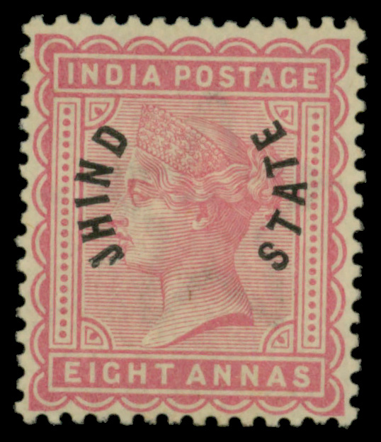 5648 og 36 image1885, India 8a red lilac, 'JHIND/STATE' overprint (Scott 36), o.g., hinged, Fine to Very Fine.