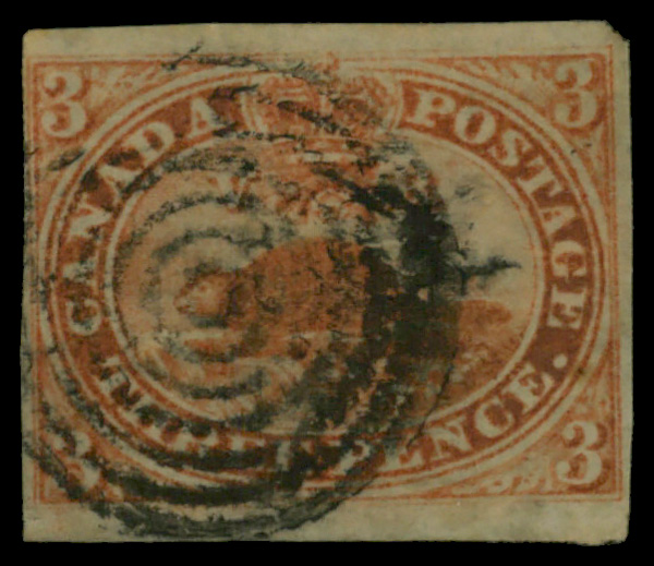 5664 O 1 image1851, Beaver, 3d red, on laid paper, imperforate (Scott 1), Fine.