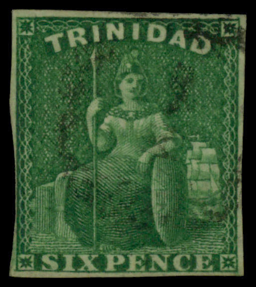 5660 O 16 image1859, "Britannia" engraved, 6d deep green, imperf (Scott 16), Fine.