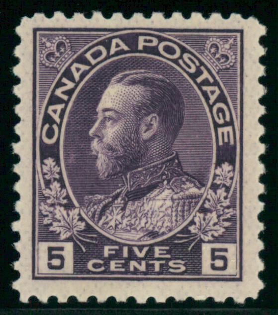 5672 og 112 image1922, King George V "Admiral", 5¢ violet, wet printing (Scott 112), o.g., hinge remnant, Very Fine.
