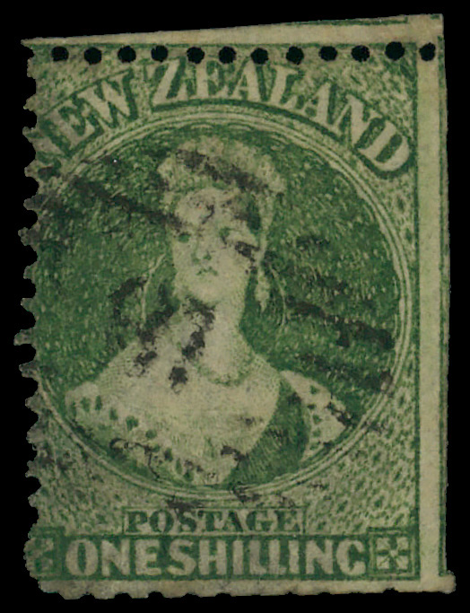 5655 O 37 image1864, Queen Victoria "Chalon Head", 1s pale yellow green, perf 12½ (Scott 37), Large Star watermark; trimmed perfs, Very Good to Fine.