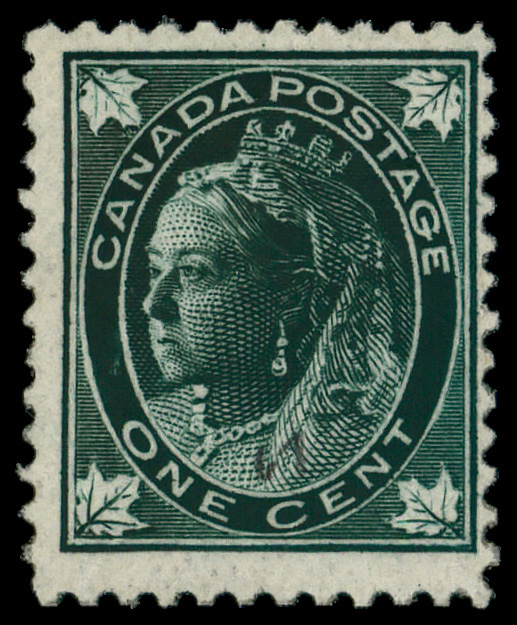 5667 nh 67 image1897, Queen Victoria "Maple Leaf", 1¢ blue green (Scott 67), o.g., never hinged, Fine.