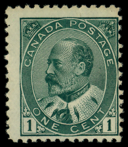 5669 nh 89 image1903, King Edward VII, 1¢ green (Scott 89), o.g., never hinged (gum skip), Fine.