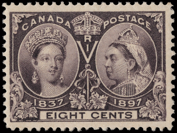 5666 nh 56 image1897, Queen Victoria Jubilee, 8¢ dark violet (Scott 56), o.g., never hinged, wonderfully fresh and beautifully centered with extra large margins, Very Fine to Extremely Fine.