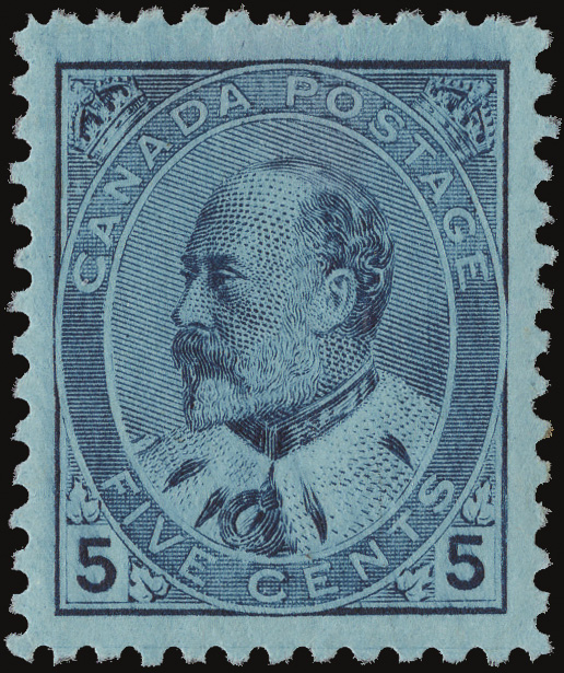 5670 og 91 image1903, King Edward VII, 5¢ blue, on bluish paper (Scott 91), a gorgeous mint single, o.g., bright, fresh and virtually perfectly centered, an Extremely Fine to Superb Gem!