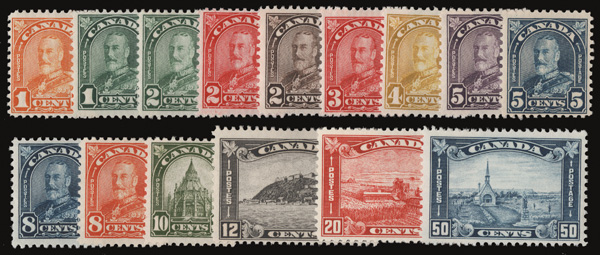 5675 nh 162-177 image1930-31, King George V "Maple Leaf" definitives, 1¢ to $1 complete (Scott 162-177), a fresh mint set, o.g., never hinged, Fine+.