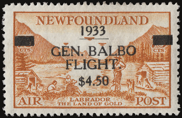 5663 og C18 imageAirmail, 1933, $4.50 on 75¢ Balbo Flight (Scott C18), o.g., lightly hinged, exceptionally fresh and beautifully centered, Extremely Fine.