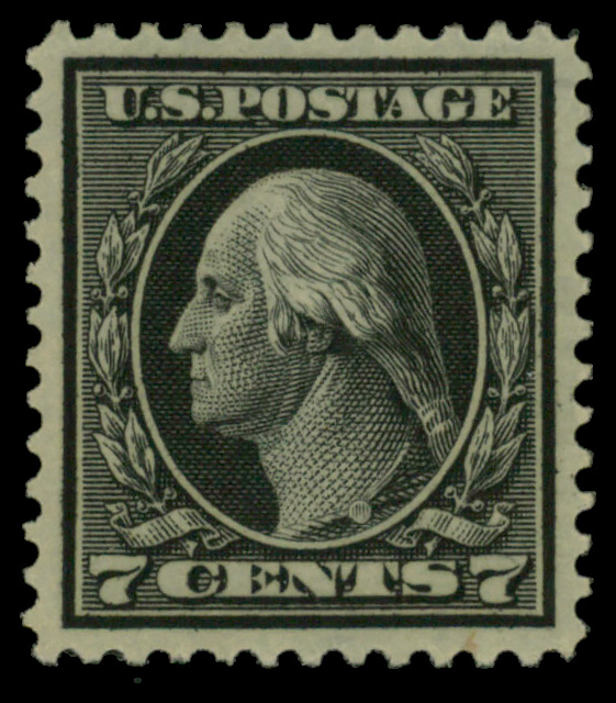 5110 og 407 image1914, 7¢ black, S.L. watermark, perf. 12 (Scott 407), o.g., lightly hinged, Extremely Fine.