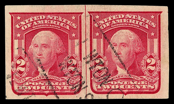 5086 O 320 image1906, 2¢ carmine, type I, imperf. (Scott 320), pair with vertical guide line between, Extremely Fine to Superb.