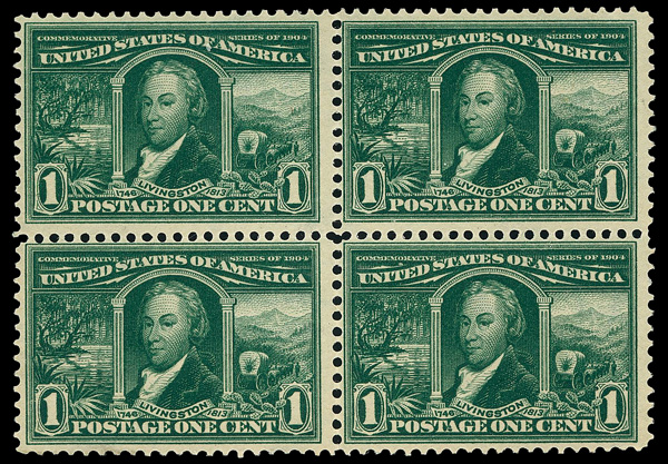 5087 nhbl 323 image1904, 1¢ Louisiana Purchase (Scott 323), block of 4, o.g., never hinged, Fine.