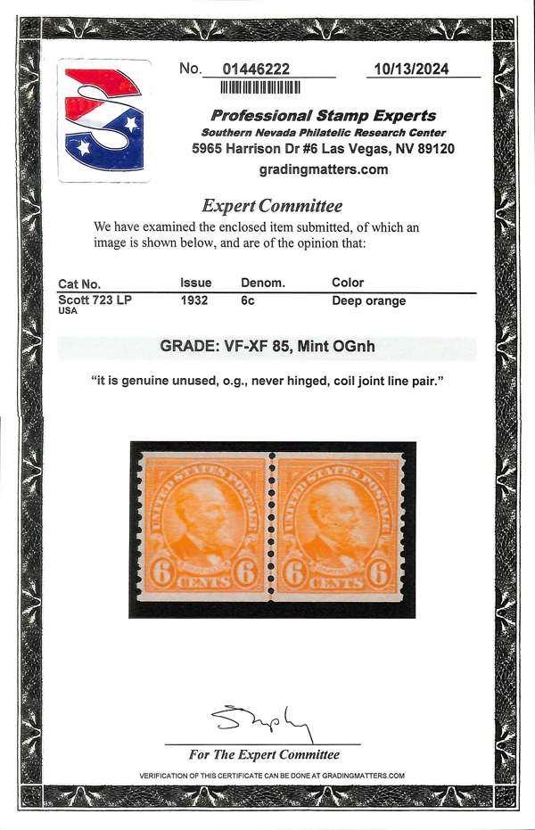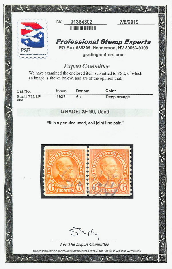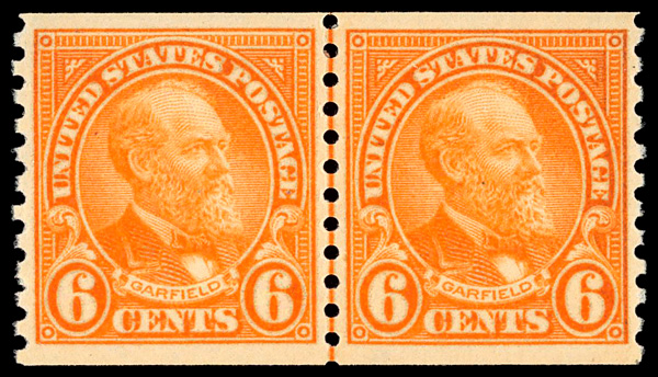 1932, 6¢ Garfield, rotary press printing, horizontal coil (Scott 723), joint line pair, o.g., never hinged, Very Fine