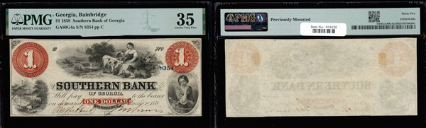 Bainbridge, Georgia - The Southern Bank of Georgia $1 Mar. 1, 1858 G4a PMG Choice Very Fine 35 (Haxby-G4a), previously
