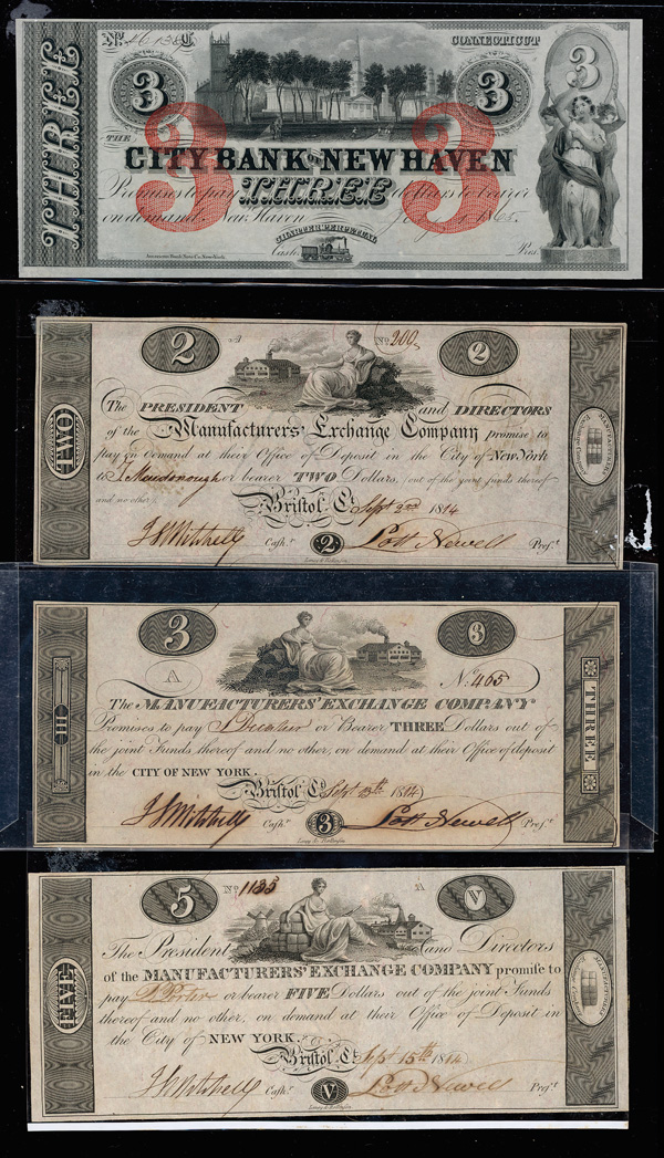 Group of (4) Connecticut Obsolete Banknotes: New Haven & Bristol, group includes: (1) City Bank Of New Haven New Haven, CT