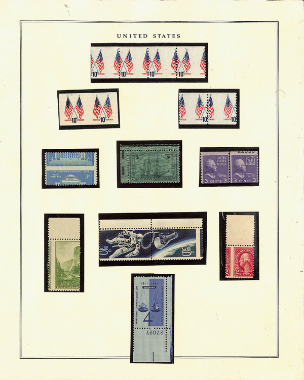 100, 112-119, 151, 152, 153, 154, 155, 165, 166, 191, 225-229, 238-240, 291 etc., mint #65 (double perforation at top), 266-267 in se-tenant horizontal pair, 286-290, 294-299, 300-309, 323-327, 328-330, 331-340, 355 with Weiss cert., 357 never