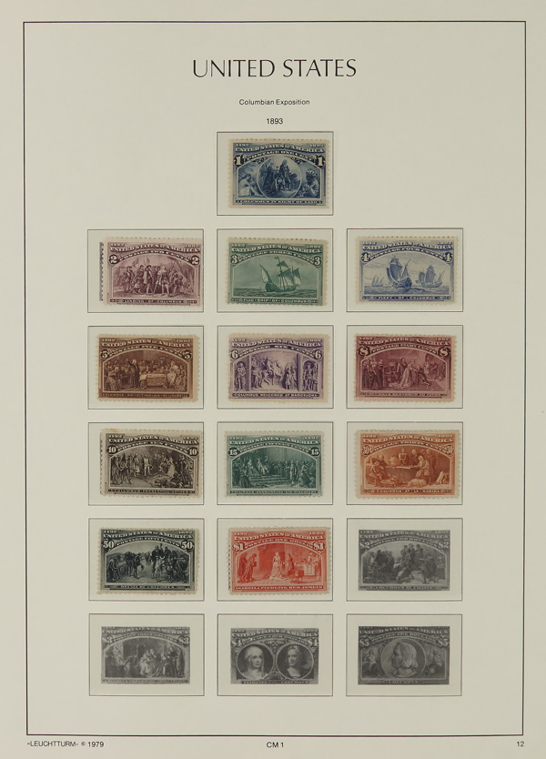 group of classic issues with #11, 36a, 38, 73, 78, 113, 133, 146, 149, 161, 189, 190, 208, 215-217, 226, 229, 238, Columbians 1¢ to a well-centered $2 value, also #249, 251, 254, 291 never hinged, 294-299, 300-308, 323-327, 328-330, 331-339,