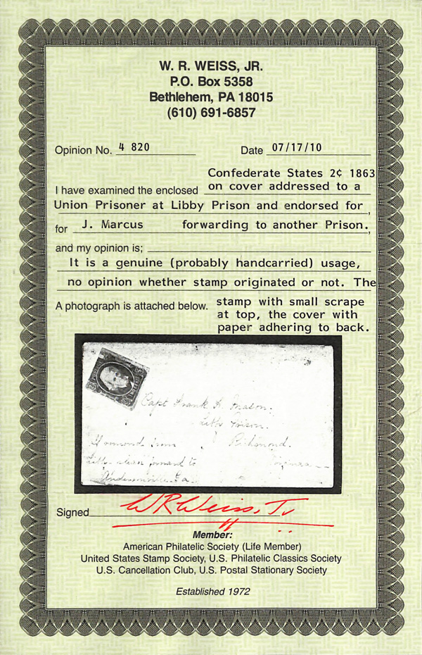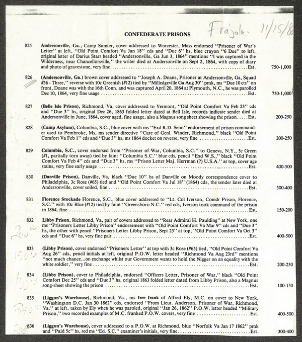Get Market Data for [United States (Confederate States) libby 1863] Visual Pricing Guide Sample Census