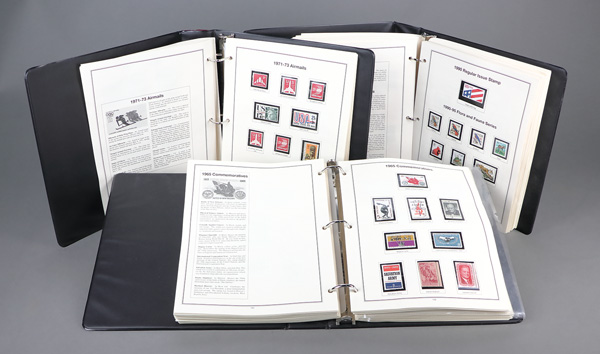 another for commemoratives to 1991, and the last one for B-O-B to 2012, all with stamps in black mounts. Highlights include #227, 233-39 (30¢ partial gum), 285-90, 294-99, 304, 306, 323-27, 328-30, 339, 343-47, 369, 397-400, 401-02, 506-13, 571,