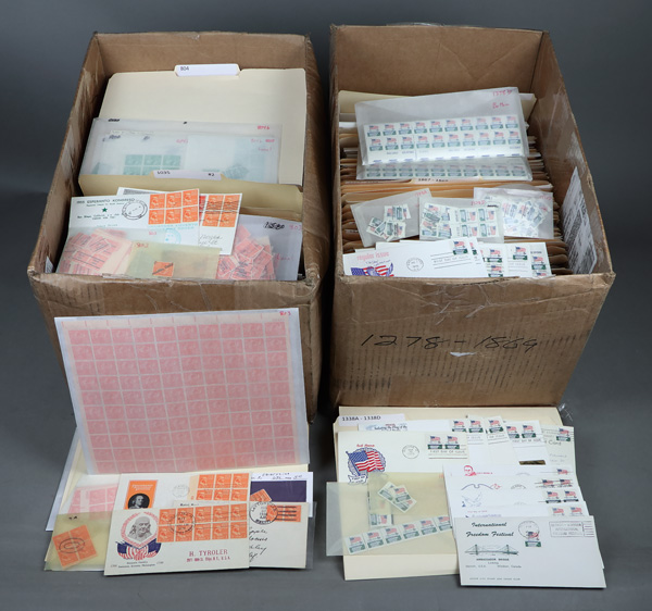 labeled with catalog numbers from #803-2197, each contains glassines with some combination of mint, used, large amount of pre-cancels and postal history; regular issues spanning the Prexies, Liberty, Prominent Americans, and Americana; 803 sheets (as