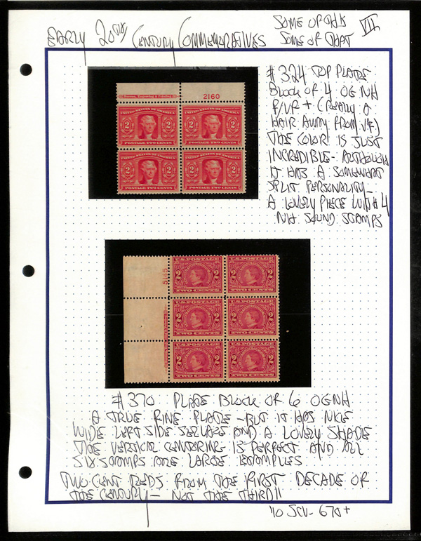 Classic Front of Book and Modern Duck Plate Block Collection, better including Never Hinged Nos. 319, 374, 467, 484, 509,