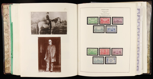 1955 Scott Commemorative album, but this collector made his own pages for regular issues, and this is where the real value lies. Highlights include #24 (3 pairs & 1 block), 26 (3 singles, 2 blocks of four, 3 blocks of six of which 2 are partially