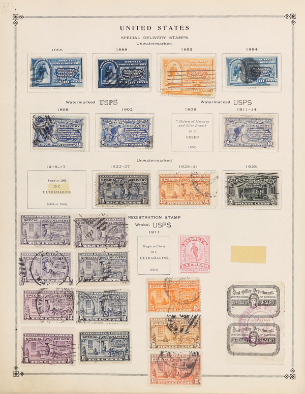 C15-16, O1-7, O11-20, and many others. In addition, one binder of covers, two with stockpages of U.S. & worldwide duplicates, and a 70-year-old, well-filled worldwide album. Whoever said "money can't buy happiness" was definitely not a stamp