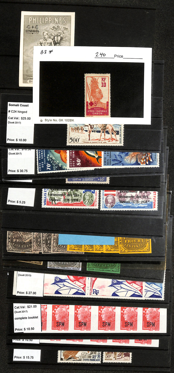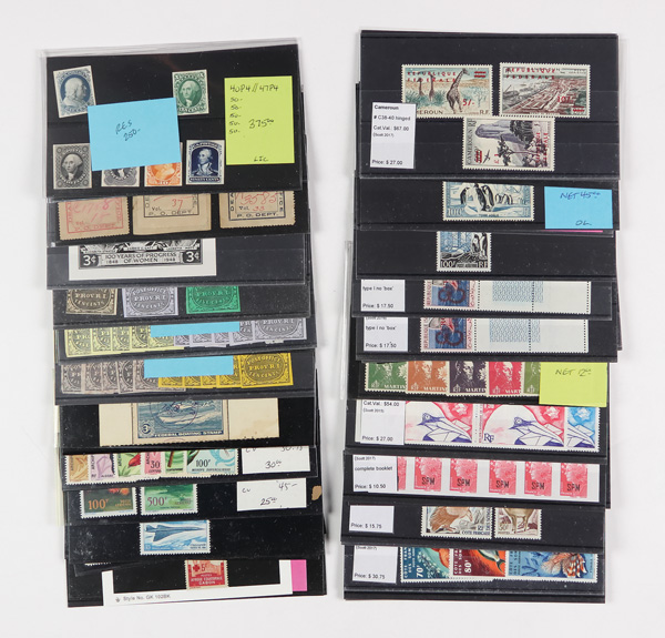 Worldwide, Dealer counter cards 1851-1995, 40 counter cards with better US and worldwide items; includes United