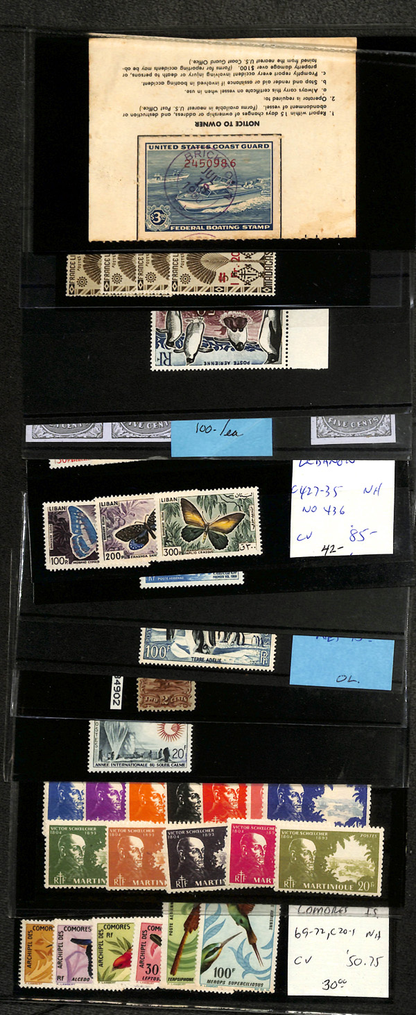 files, various binders, and the like; US is more contemporary with sheets, blocks, cut squares, and precancels; strong Liberia with lots of useful items, Latin American, France and Colonies, Israel, Japan, lovely Spain and Colonies, Russia and area,
