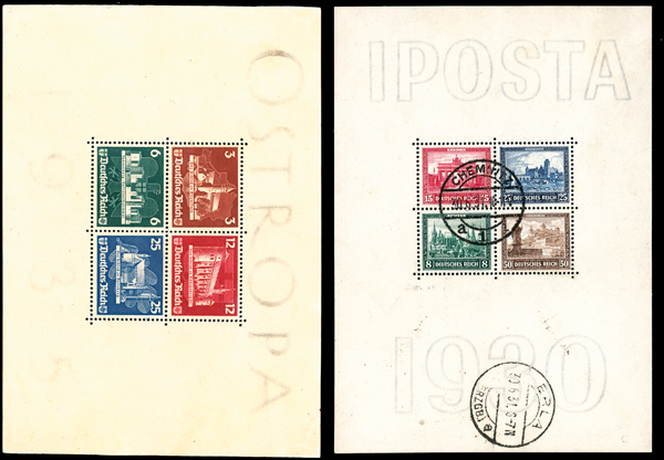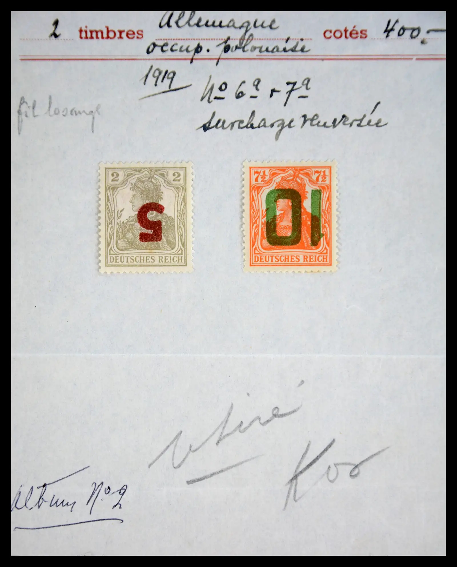the Berlin "Bauten" series, a double impression of Germany B302 (MiNr. 101DD), a margin copy of the unissued 50fr value from the Flemish Legion with "Langemark" overprint (MiNr. XX A), two stamps from the first issue of the
