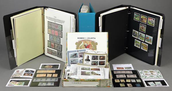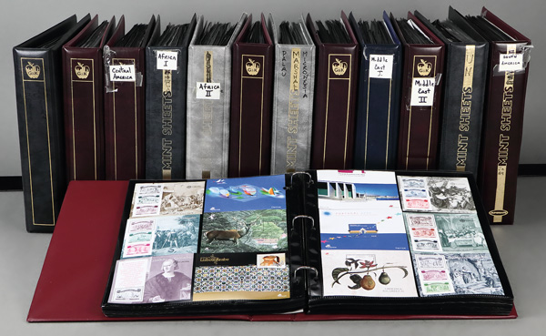 nearly all different and housed in thirteen binders arranged by country. A few used here and there but predominantly mint with Cuba, Portugal, Spain, and Romania, each with over 200 souvenir sheets, over 100 from Argentina, Brazil,