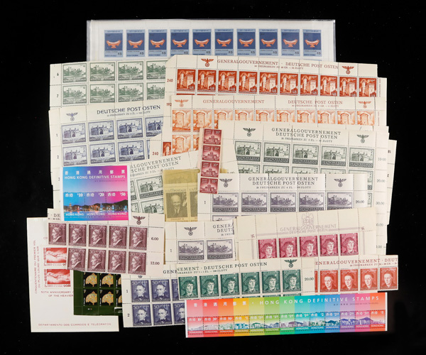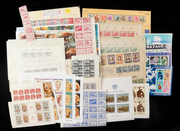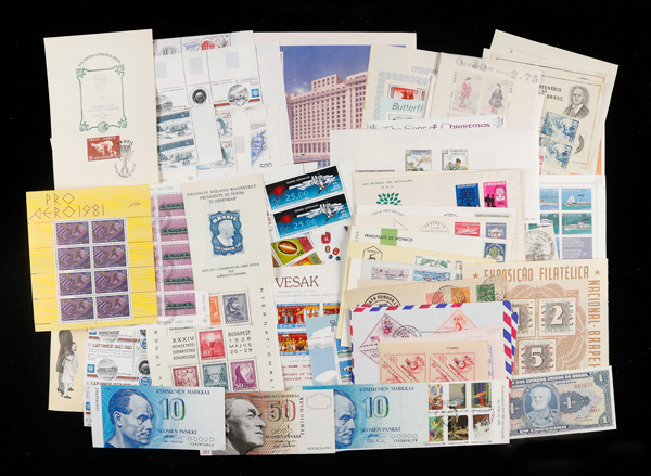 Iraq C1-8 (perf & imperf sheets), Liechtenstein 132-35 (sheets of 25), Paraguay 645 (perf & imperf sheets), Poland B31, Portugal 594a, 649a, Russia 1325, Saar B64, and used Germany B33, B105,