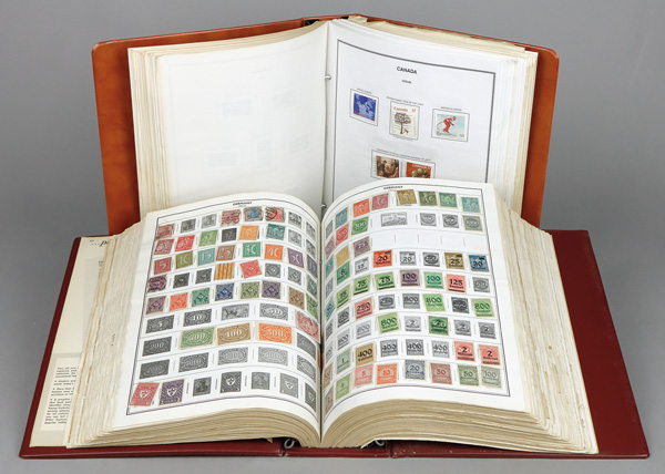 Worldwide, Surprises in basic albums 1847-2014, Harris Standard World album and Canada Stamp album with jewels buried