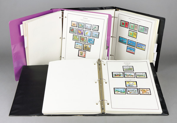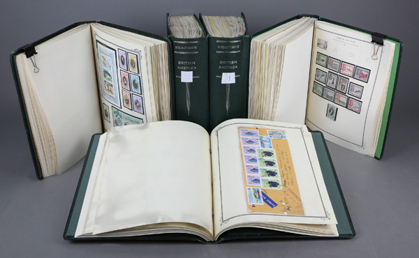 Specialty albums with a number of strong showings from not only the countries mentioned above, but many others. Highlights include Antigua used #2-4, 12-16, mint 56, 107-21, Bahamas used 2, 7, 8, 14-15, 20-25,