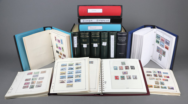 Scott, but also a hingeless Lindner with SWA (1897-1973) and pages until 1990 with a continuation on internet pages until 2010, and nearly complete mint collections of Gambia (1941-83) and Ghana (1957-83) on loose album pages.