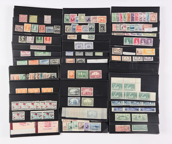 album pages, counter pages, and black stocksheets, and in glassines, "102" cards and envelopes, some even former auction lots, like a complete set of mint officials. A bit of Newfoundland, but the vast majority Canada with such better
