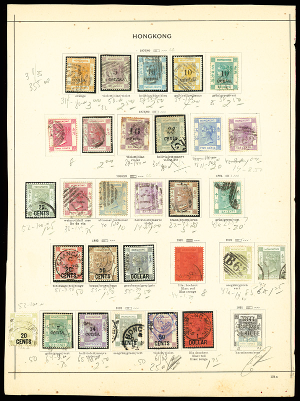strong classic Hong Kong to extensive British Offices Abroad. Highlights as identified by the collector include Cape of Good Hope mint #68-69 (blocks), used 162 (on piece), 167 (on piece), 171-75 (each on piece),