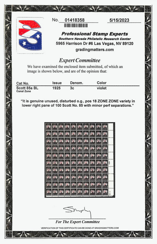 Get Market Data for [United States Possessions (Canal Zone) 85a] Visual Pricing Guide Sample Census