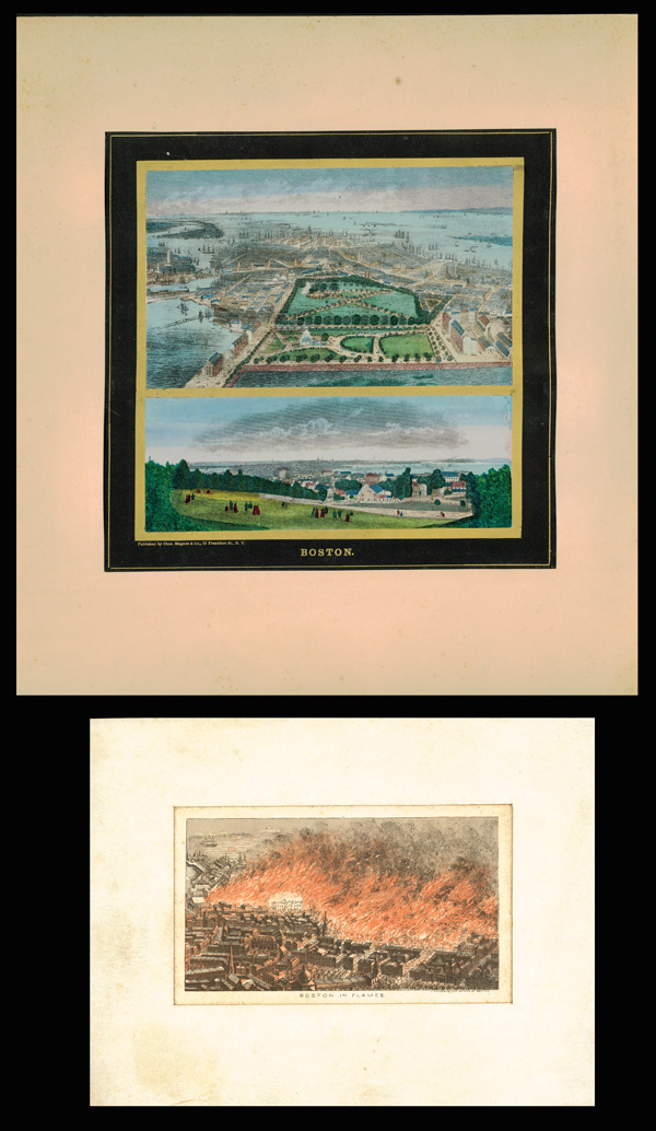 Group of (2) Boston Related Portrait Artworks, includes: Boston in Flames & a portrait of Boston from 1850 (2 items). (Image) (Image2)
