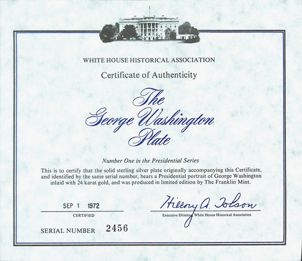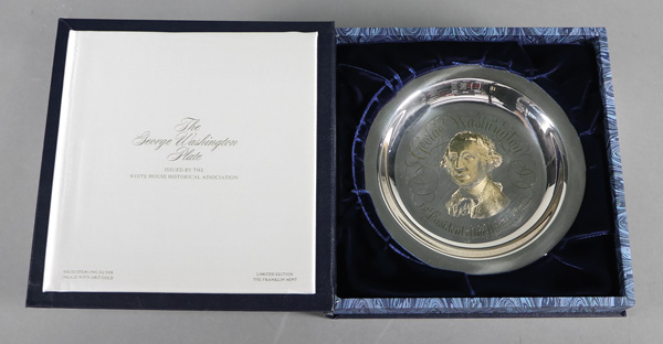 Franklin Mint George Washington Plate (1972) is in pristine condition with the original paperwork, case, and box. Shipping charges apply - weight 3.4 lbs. (Image) (Image2)