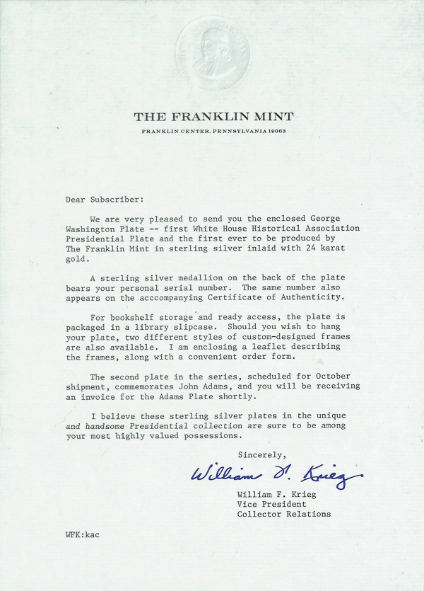 Get Market Data for [Ephemera franklin mint 1972 jeffer] Visual Pricing Guide Sample Census |