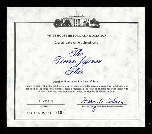1972 Thomas Jefferson Silver Limited Edition Franklin Mint Collectible Plate, This limited edition silver plate depicting