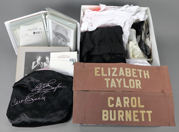 personalized canvas for set chairs for Carol Burnett and Elizabeth Taylor from Between Friends (1985), as well as a cast and staff jacket for the same film. Additionally, multiple playbills, press photos, and more relating to Carol Burnett are