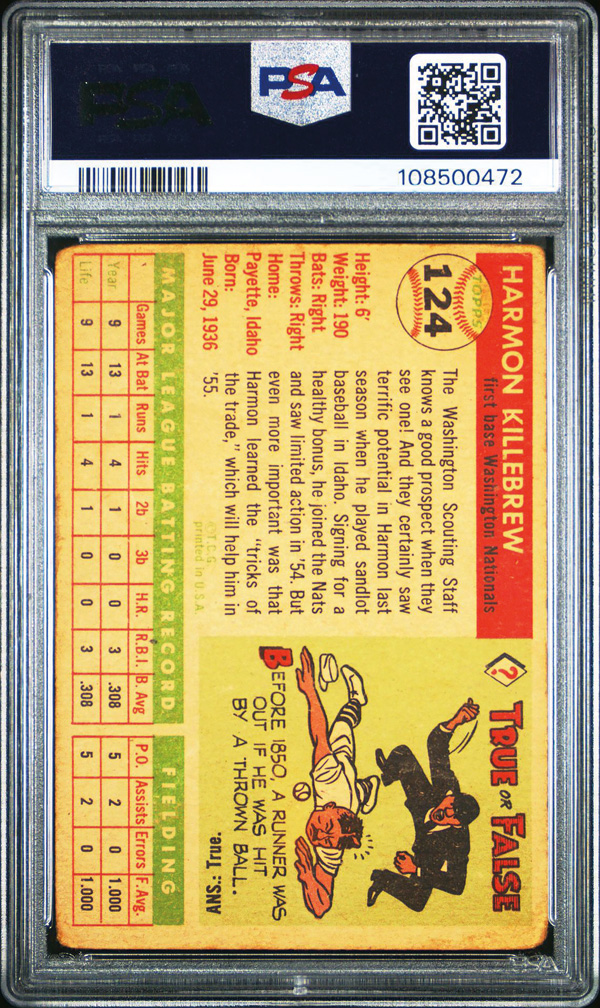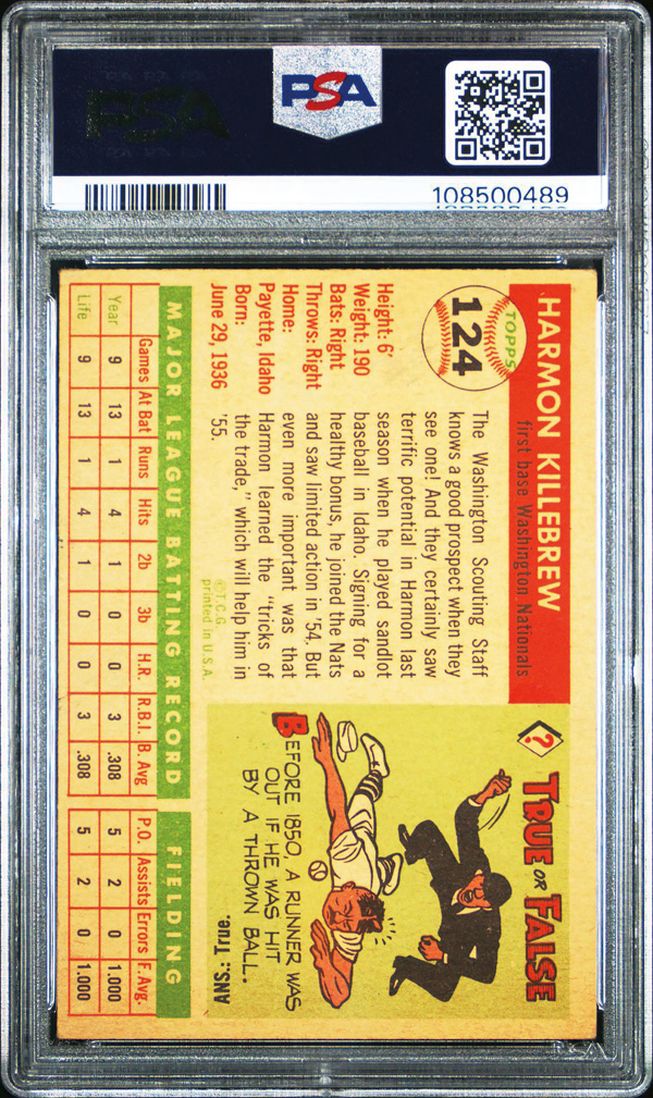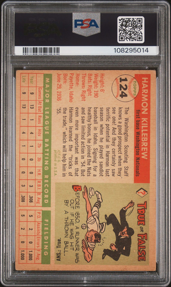 1955 Topps #124 Harmon Killebrew Rookie Card PSA 2 GOOD, Good 2. (Image) (Image2)