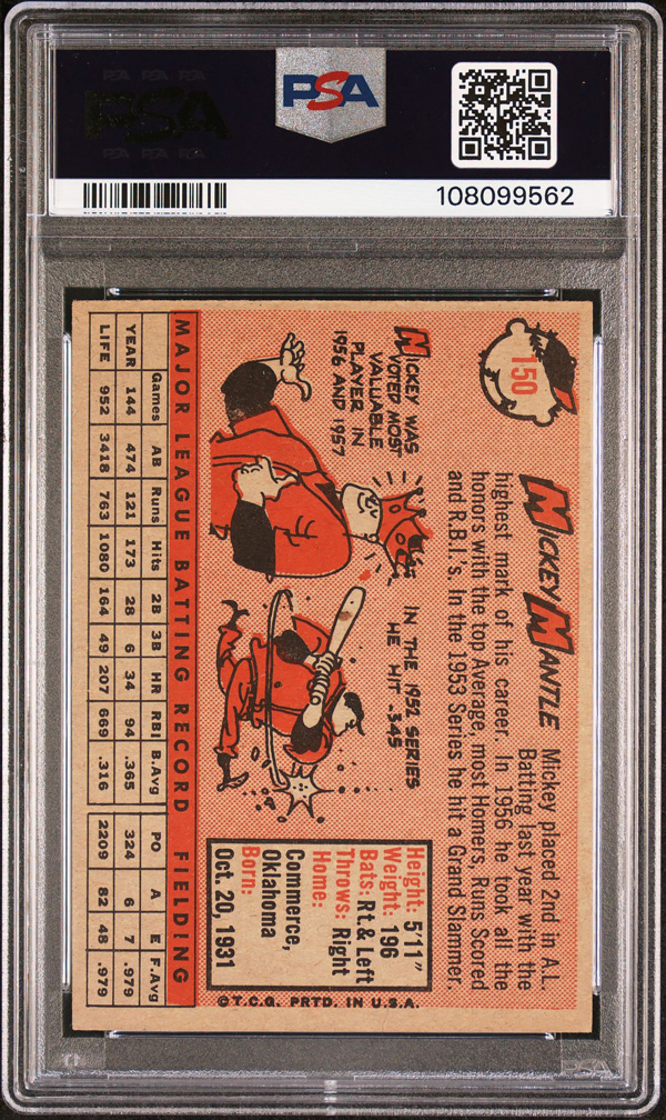 1958 Topps #150 Mickey Mantle PSA 5 EX, Excellent 5. (Image) (Image2)