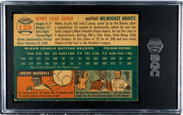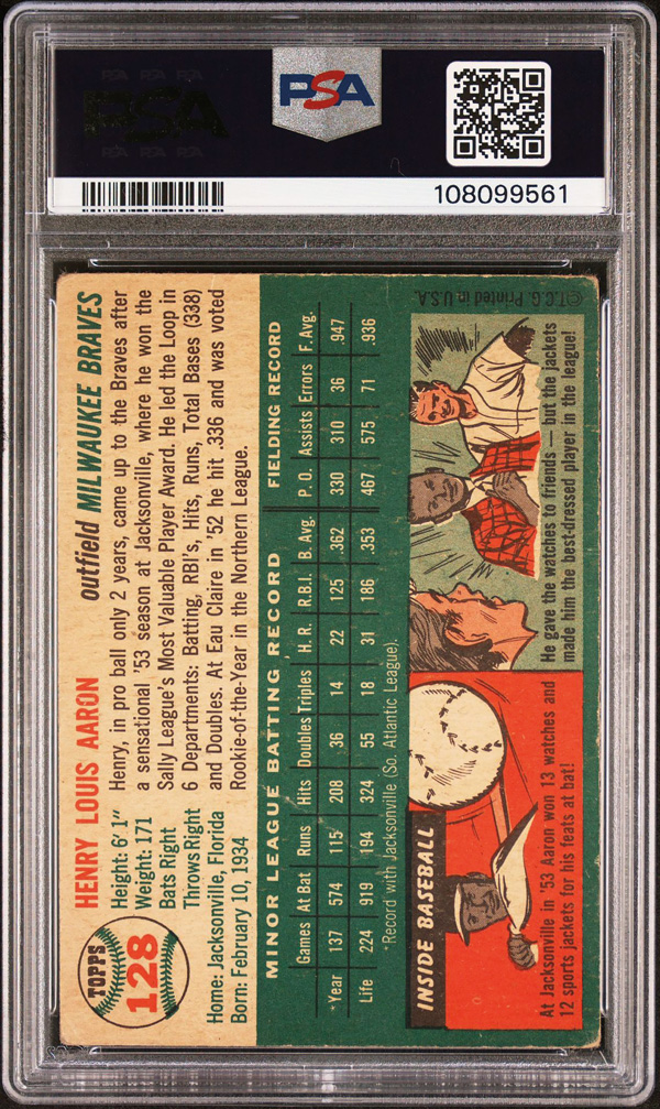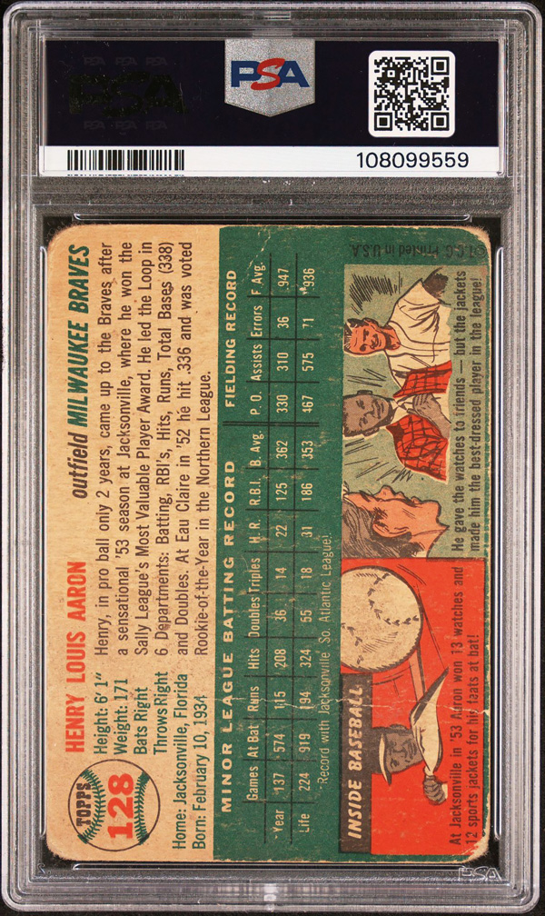 1954 Topps #128 Henry Hank Aaron Rookie Card PSA 1 PR, Poor to Fair 1. (Image) (Image2)