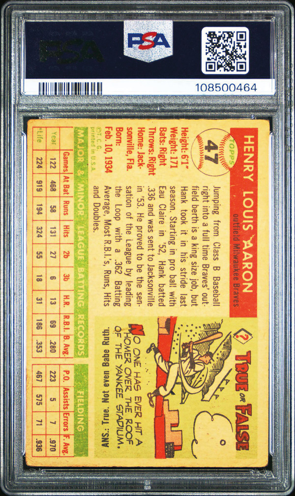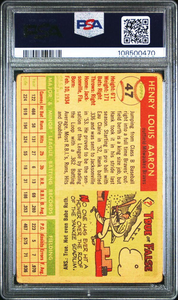 1955 Topps #47 Hank Aaron PSA 1 PR, Poor to Fair 1. (Image) (Image2)