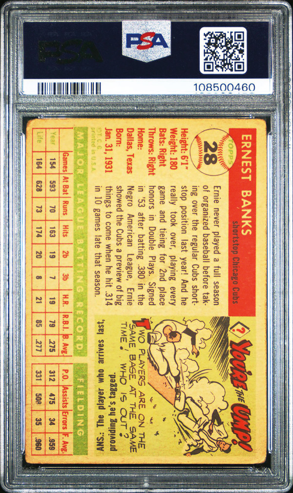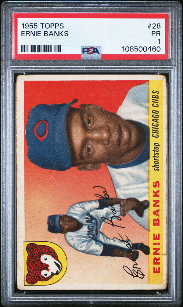 1955 Topps #28 Ernie Banks PSA 1 PR, Poor to Fair 1. (Image) (Image2)