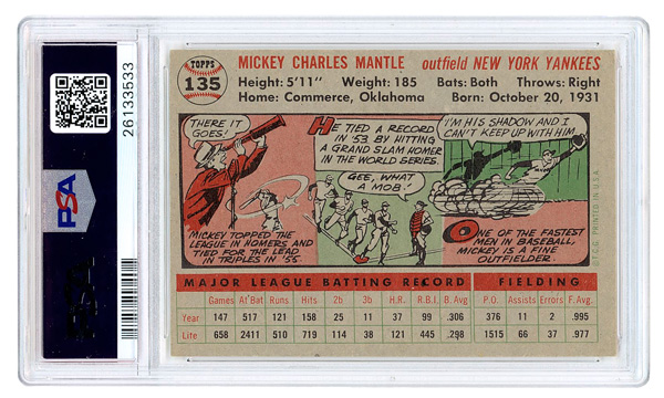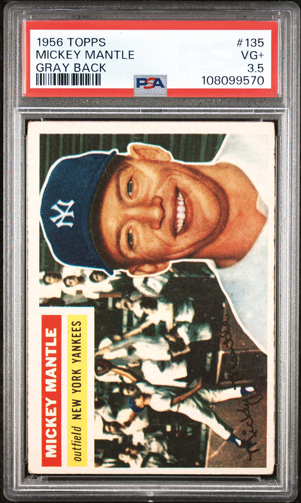 1956 Topps #135 Mickey Mantle Gray Back PSA 3.5 VG+. (Image) (Image2)