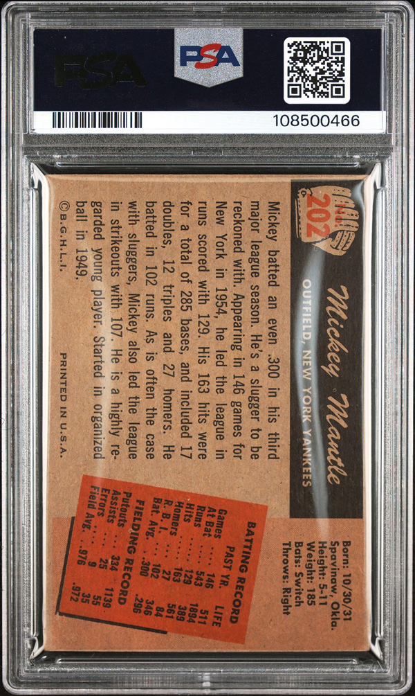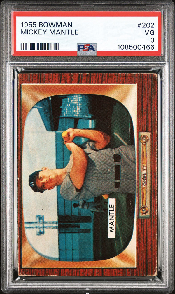 1955 Bowman #202 Mickey Mantle PSA 3 VG, Very Good 3. (Image) (Image2)